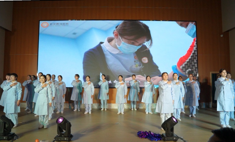 “中国护士,大爱无疆,用奉献浇灌生命,让青春永远绽放;中国护士,大爱无疆,生命守护生命,让真情地久天长。”晚会的最后,医院全体护士长为大家倾情演唱《中国护士之歌》,让白衣天使的奉献情怀再一次在歌声中升华。
