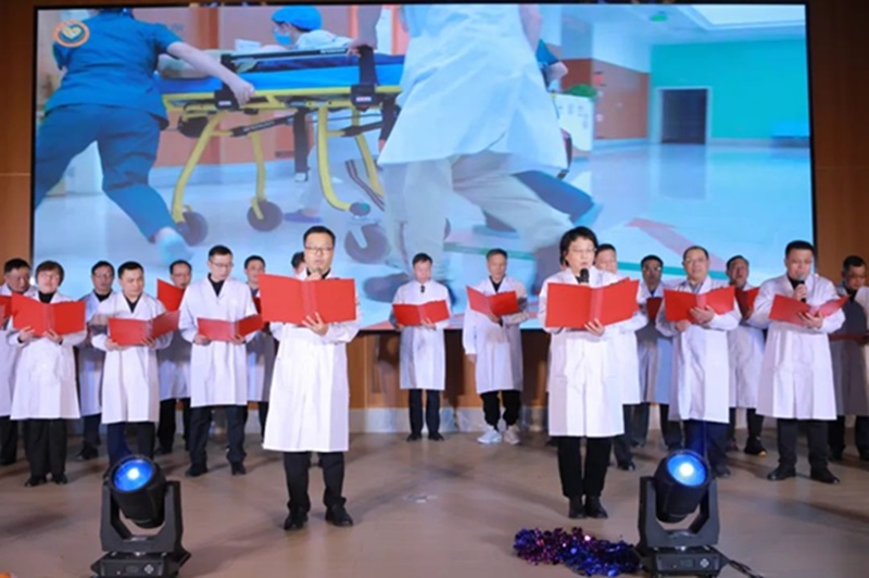 “今天的袁河医院,到处都有开拓者的激情,到处都有活跃跃的希望;今天的袁河医院,正在赣中红土地上崛起;今天的袁医人,正将‘大医’旗帜举起高扬……”医院的20多位主任、专家走上舞台,用声情并茂朗诵《我们都是袁医人》,将“袁医人”的风采、袁河医院的“家文化”做了生动的诠释和演绎。